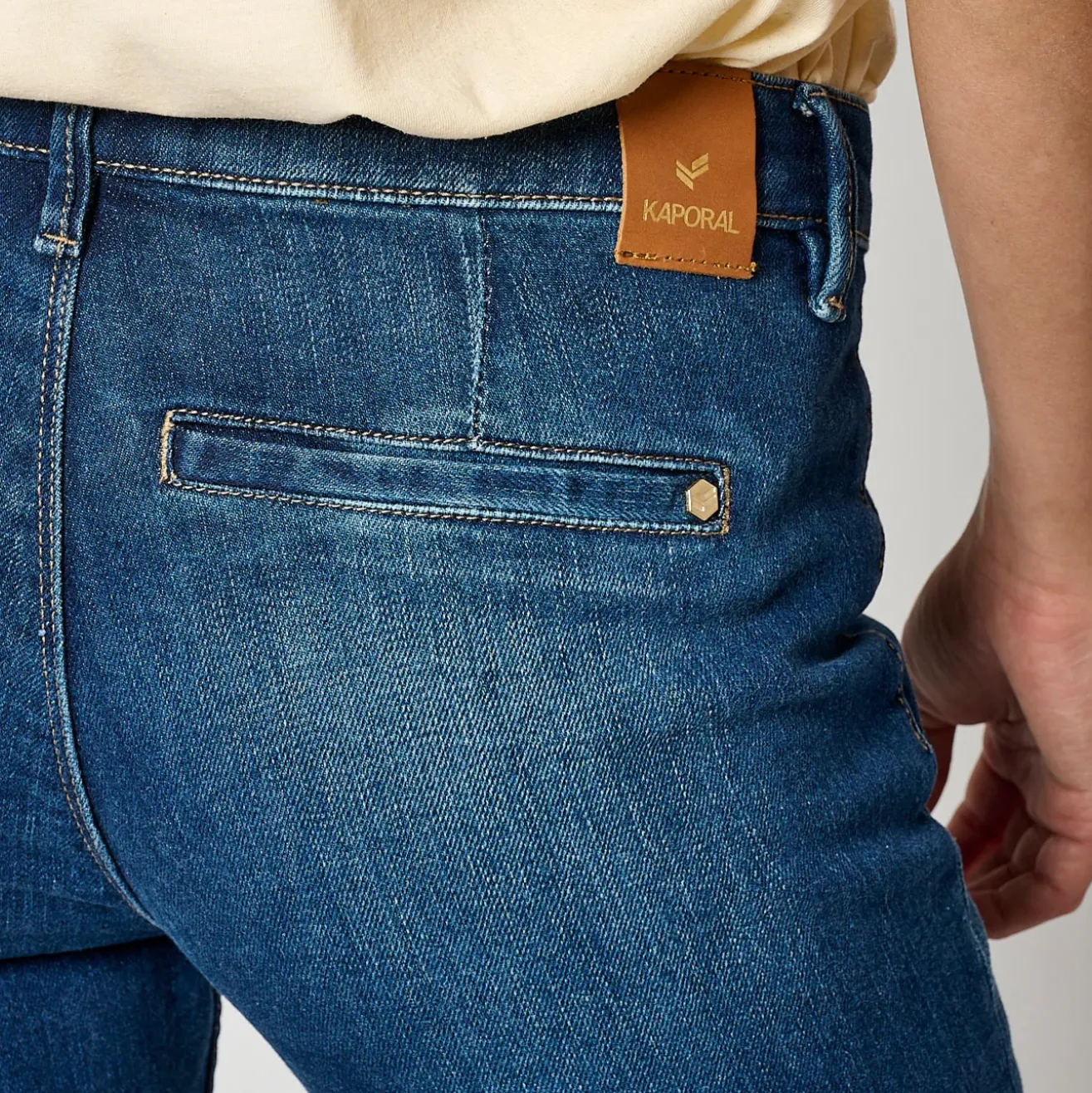 Le mannequin porte une taille 26us et mesure 1m73