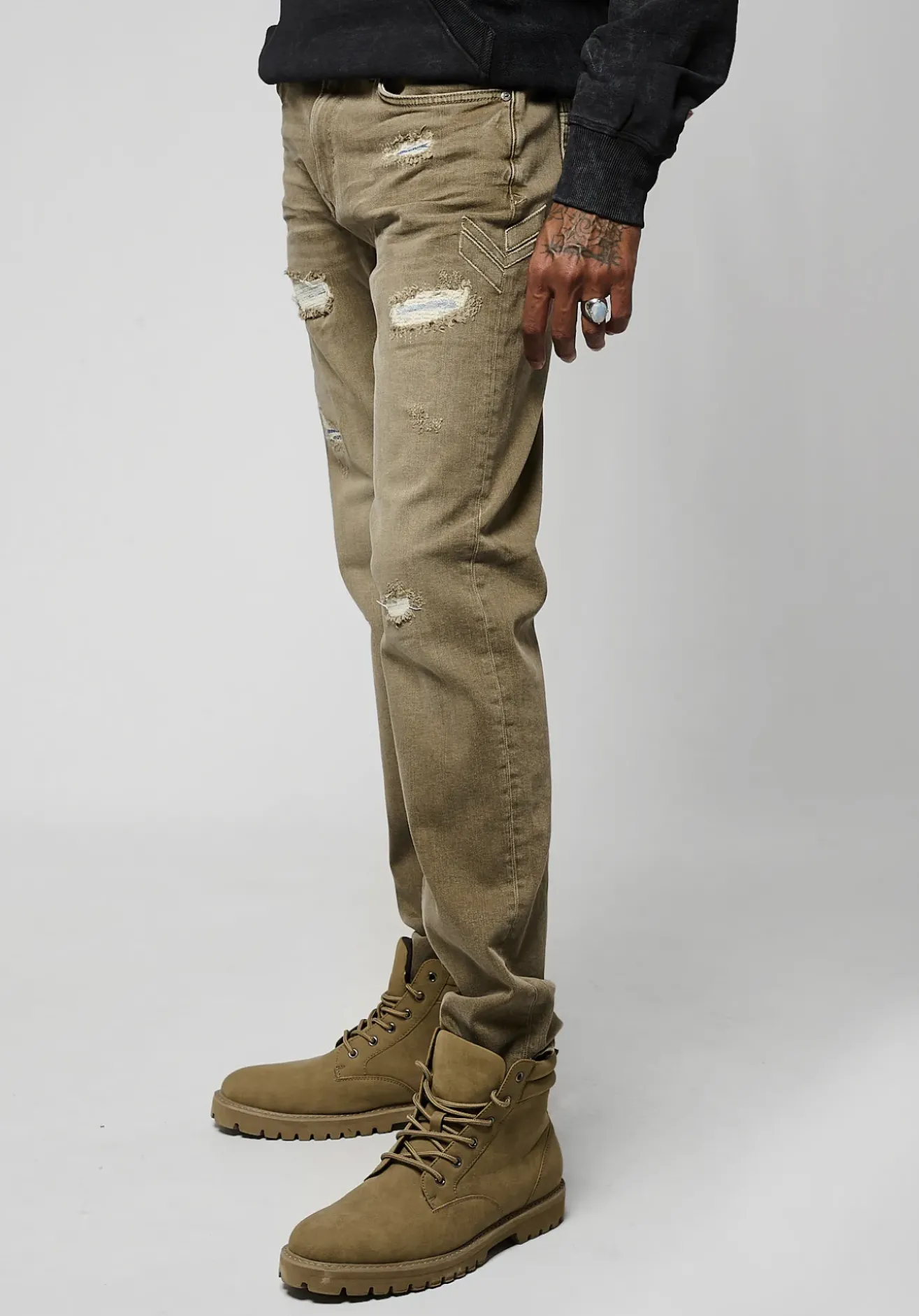 Notre mannequin porte une taille 32US et mesure 1m80