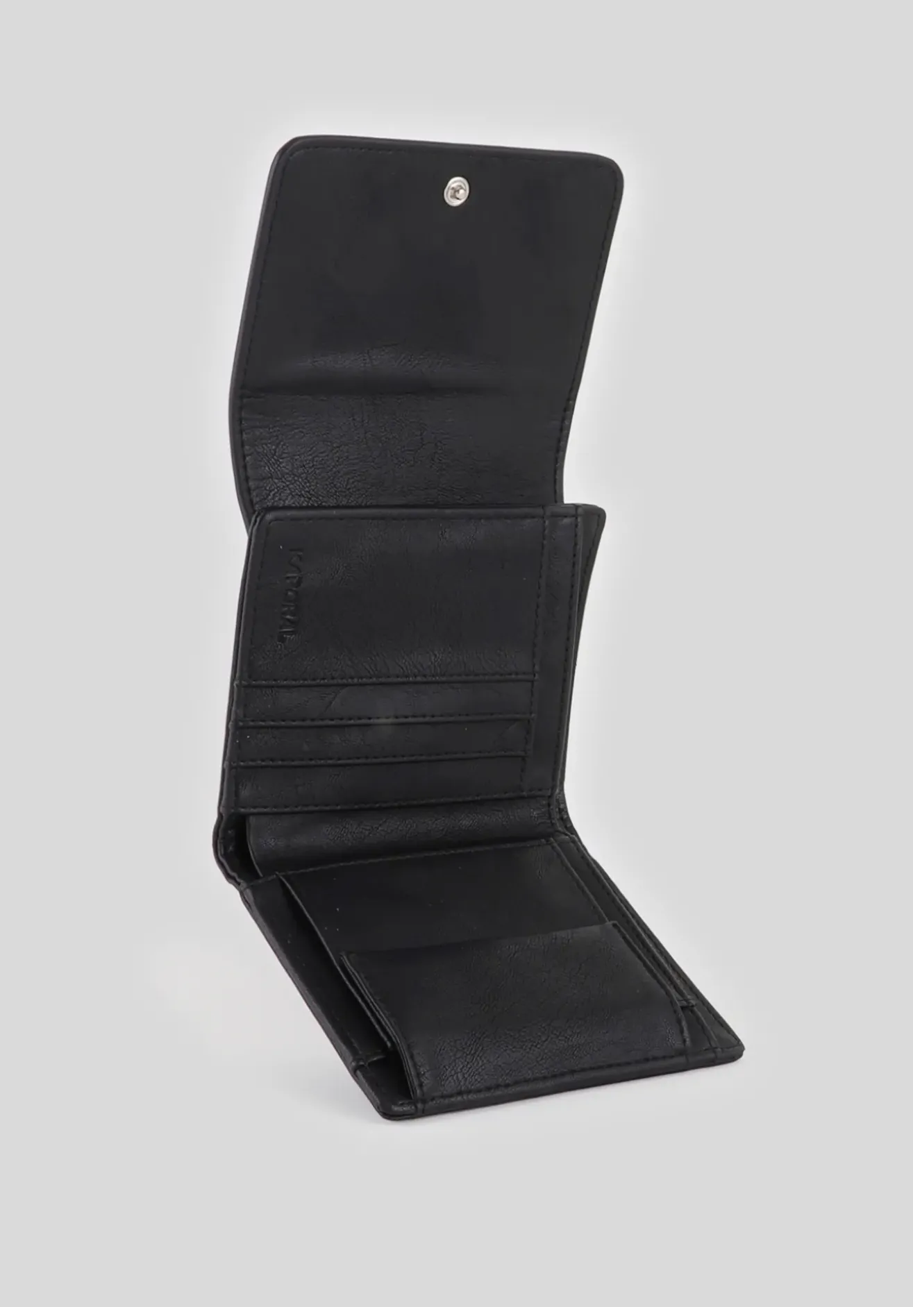 Emplacements multiples : porte-monnaie à fermeture boutonnée, 1 porte billet, 3 emplacements carte, 3 poches simples