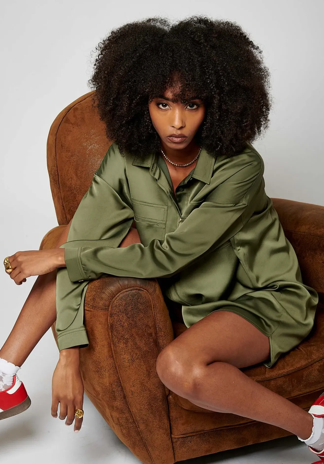 Robe chemise satinée