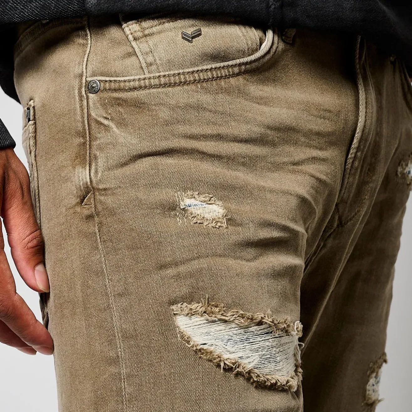 Notre mannequin porte une taille 32US et mesure 1m80