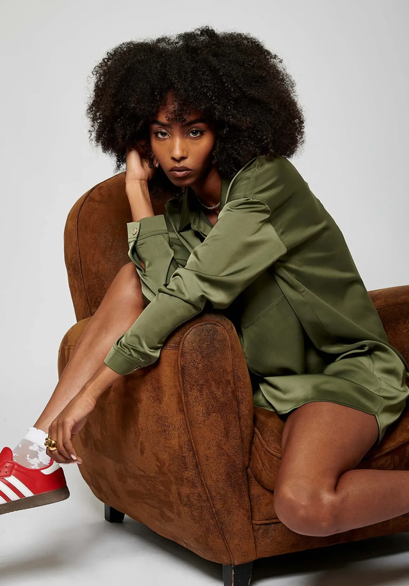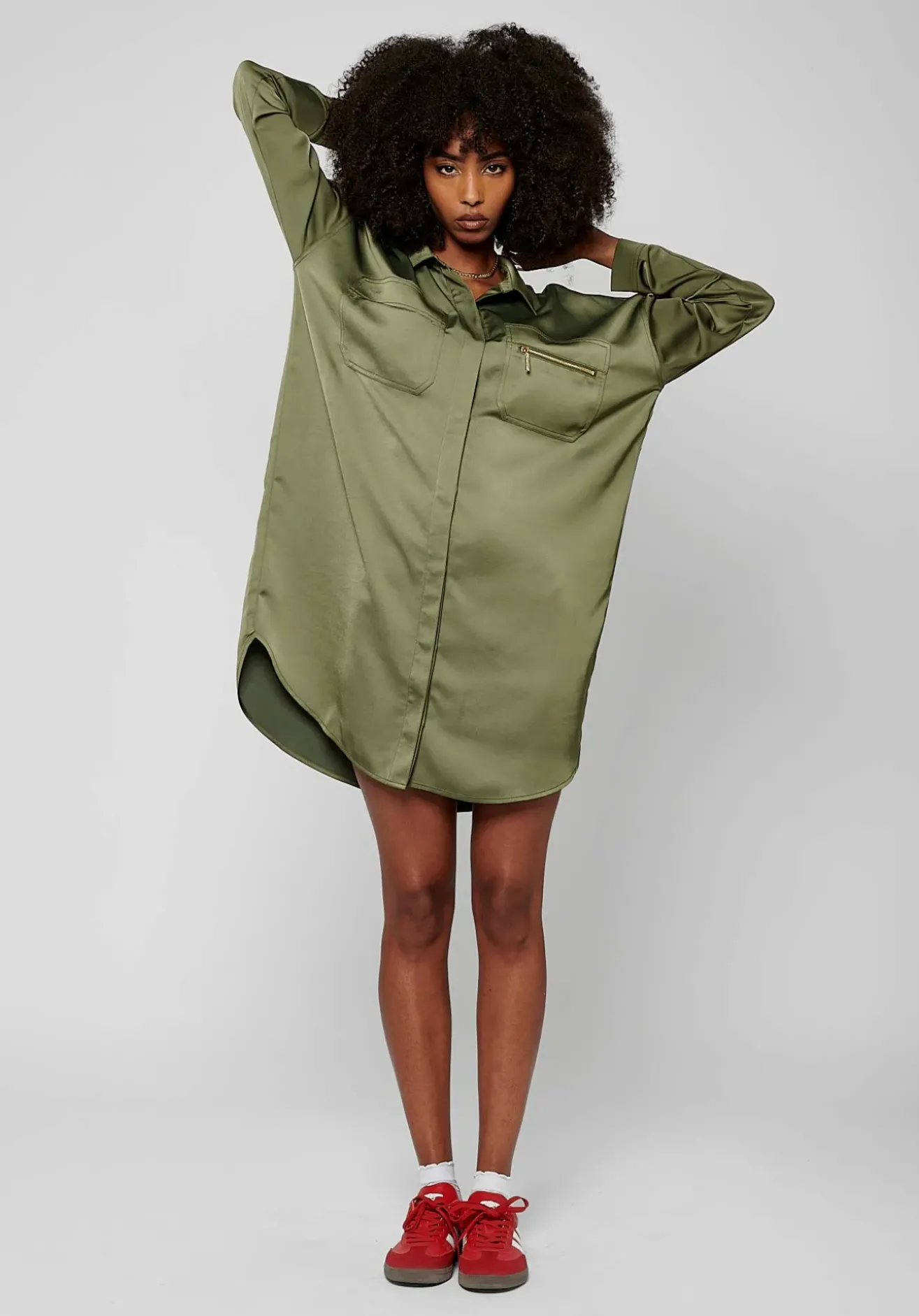 Robe chemise satinée