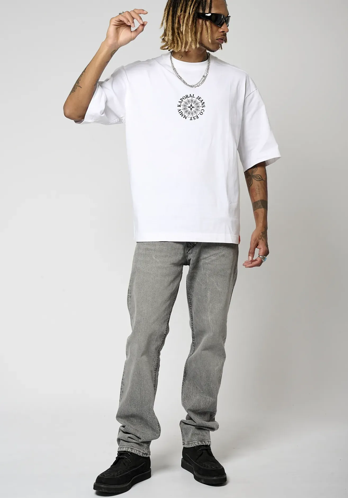 Notre mannequin porte une taille L et mesure 1m83