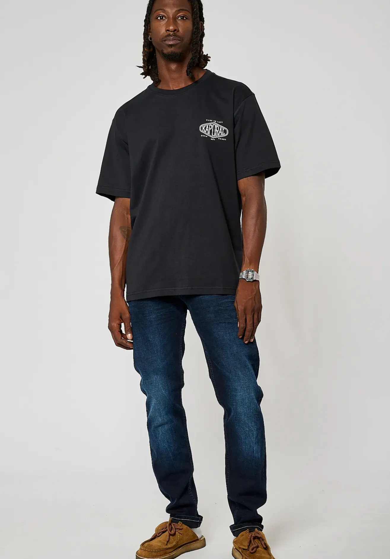 Notre mannequin porte une taille L et mesure 1m80